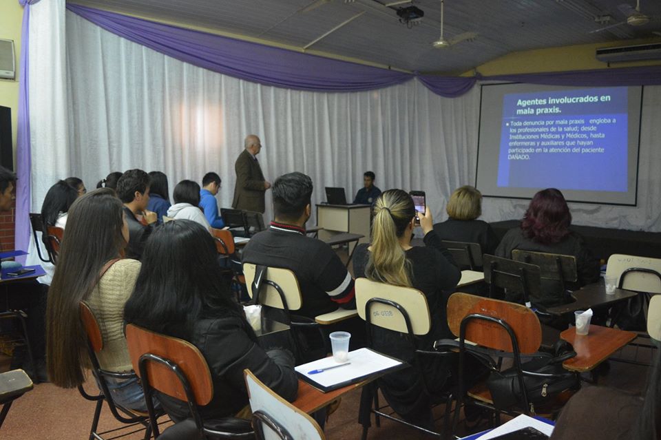 Las disertaciones estuvieron a cargo del doctor Abilio Obregón y la licenciada Delia González Báez, ambos docentes de la cátedra de Enfermería Legal, Ética y Deontología de la carrera de Enfermería de la FACISA-UNE.