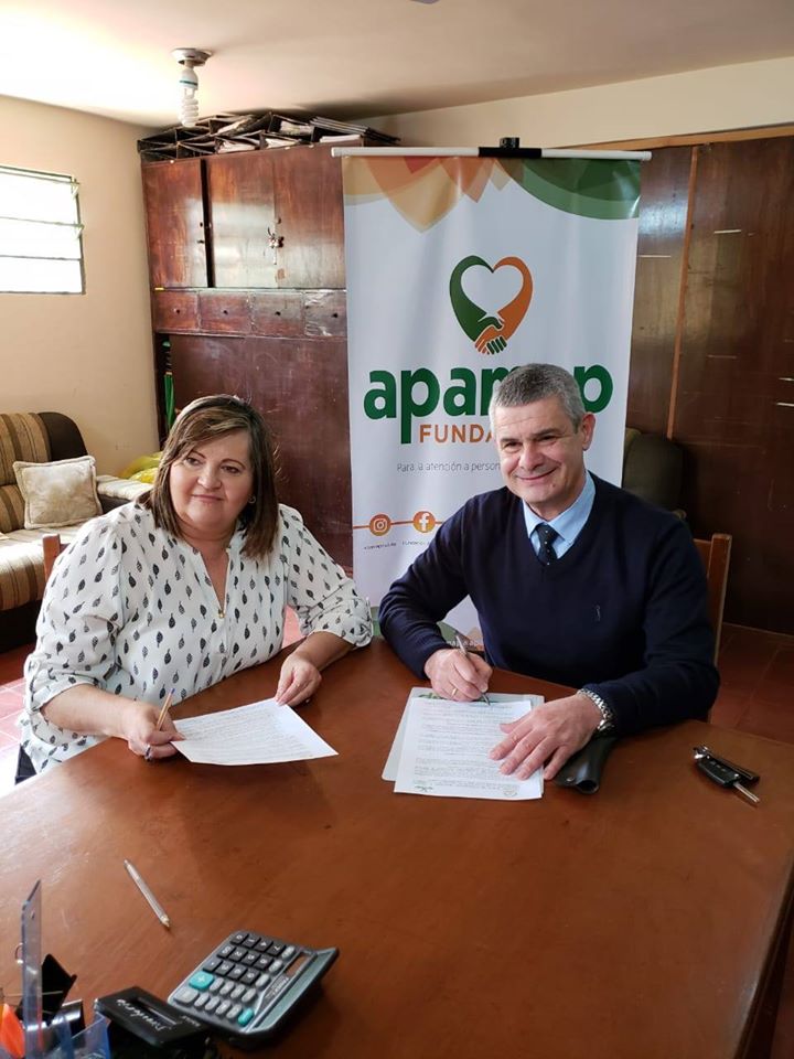 La firma del Acuerdo estuvo a cargo del doctor Hugo Fernando Casartelli Oreggioni, por la FACISA-UNE, en su carácter de decano de la Unidad Académica, y de la señora Laura Galante de Meskin, por APAMAP, en su condición de presidente de la referida organización.