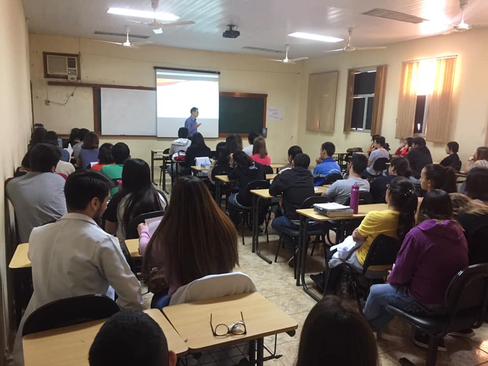 En el marco de las actividades de apoyo para la promoción de la Salud Mental, emprendidas por la Unidad Técnica de Bienestar Estudiantil (UTBE), los estudiantes del primer año de las carreras de Medicina y Enfermería de la Facultad de Ciencias de la Salud de la Universidad Nacional del Este (FACISA-UNE), participaron de una charla de orientación dirigida por el psicólogo de la UTBE de la Facultad, el doctor Marcelo Panza, con el tema “Estrategias para identificar y afrontar problemas del estado de ánimo”.